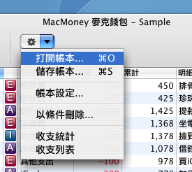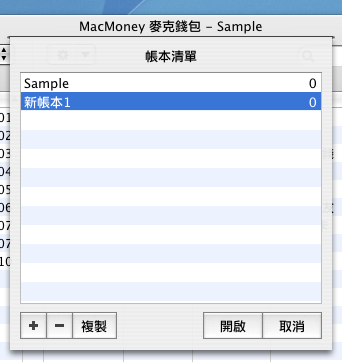 (圖中的Sample是軟體內建的範例帳本,右邊的數字代表帳本內的資料筆數)