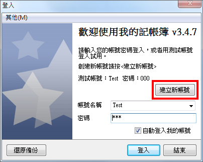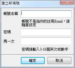 2. 輸入要建立的帳號名稱和密碼,帳號可以輸入中文,密碼則只能輸入英數,不過帳號建議使用英文字