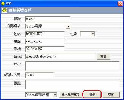 3.將資料輸入完後按下儲存